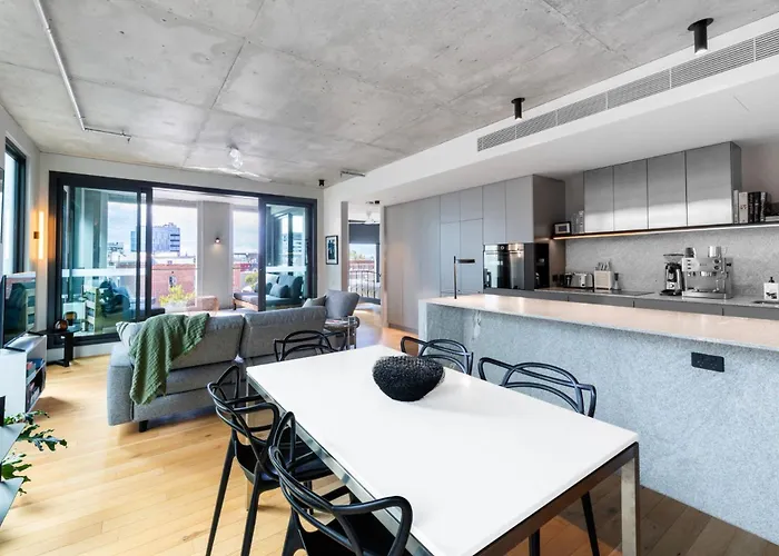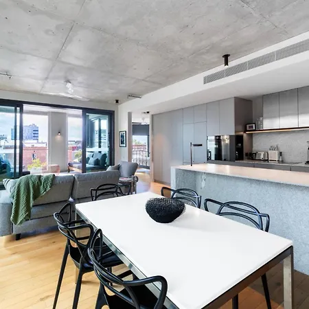 104m²のHemingway Collingwood - Luxe Apartment W Parking メルボルンは住宅街に位置し、ユーレカタワーから自動車で10分で、ラ・ママ・シアターから1.3kmです。